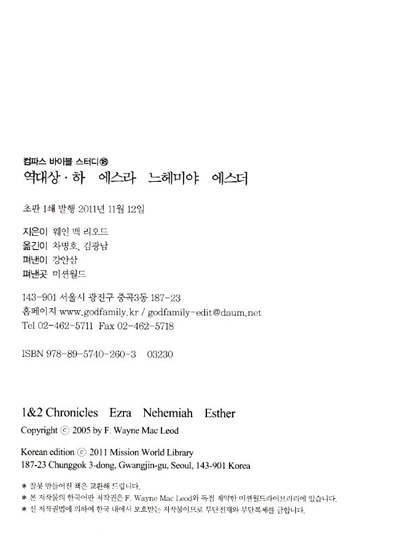 주님 안에서 한 형제 자매된 한국의 성도 여러분에게 문안합니다. 문서사역 기관인 미션월드를 통해 '컴파스 바이블 스터디'시리즈가 한국어로 번역되어 출간됨을 저에게는 큰 영광입니다. 이 시리즈를 통해 여러분에게 하나님의 은혜가 넘쳐나길 소망합니다.