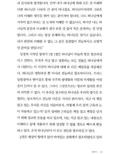 영적인 성장을 위해서는 올바르게 성경을 이해하고 적용하는 것이 필요합니다. 이 시리즈를 통해 제가 의도한 바는 독자들이 성경과 친숙해지고 복음의 비밀을 깨닫게 되는 것입니다. 이 책의 가치는 책 자체가 아니라, 책이 말하려는 복음에 대한 이해와 적용을 여러분이 삶으로 실행하는가에 있습니다. 책 안에 쓰고 싶은 말은 너무 많지만 저는 여러분이 하나님과 동행하면서 진리를 발견하고 그 진리에 순종하는데 필요한 내용들을 중심으로 서술했습니다.