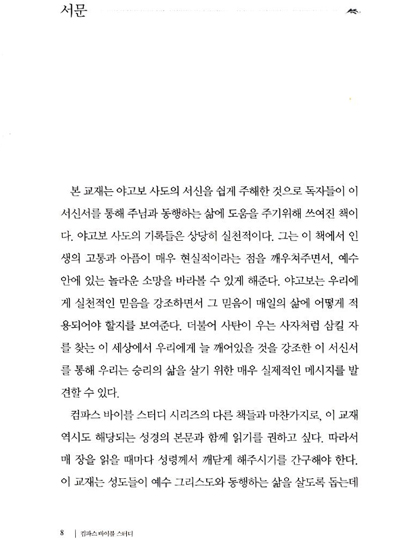 컴파스 바이블 스터디 시리즈를 개인적인 성경 연구, 가정예배와 교회 새벽기도 시간 등에 성경을 연구하는 교재로 사용하기 바랍니다. 각장의 마지막에 있는 묵상과 기도는 우리의 일상생활에 말씀을 적용하는데 큰 도움을 줄 것이기 때문입니다. 이렇게 각 장의 메시지를 깊이 묵상하다 보면, 우리 심령이 감동과 기쁨으로 뜨거워져서 어느새 하나님을 향해 예배하고 있는 모습을 발견하게 될 것을 확신합니다.
