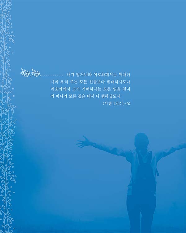 그러나 내 모든 문제를 주님께 의지한다면 나는 그 짐의 무게로부터 자유해질 수 있습니다. 하나님은 날마다 우리의 짐을 지시겠다고 약속하고 계시니까요. 우리는 모든 염려를 주